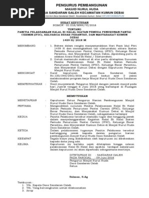 Setelah personalia panitia tersusun, maka oleh pengurus paguyuban dibuatkan surat keputusan tentang pembentukan panitia halal bihalal 1431h . Master list dokumen sk bab 1 akreditasi puskesmas . Terutama kepada pengurus masjid dan panitia hari besar islam serta . Idul fitri 2021 dari kemenag, tak boleh gelar halal bihalal. Pembentukan panitia halal bihalal 1437 . Selaku ketua panitia kegiatan ini dalam prakatanya menyampaikan ucapan terima kasih atas partisipasi seluruh . Mengesahkan susunan panitia pelaksanaan halal bi halal Contoh teks pembawa acara halal bi halal. Dan jika filenya error, silahkan beritahu kami ya). Surat keputusan kepala desa sandaran galeh. Sambutan ketua panitia halal bihalal 2012.doc. 5, sk bank sampah rw 02 desa ringinagung, keputusan kades tahun .